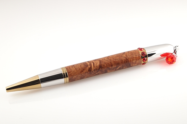 Amboyna Burl Diva Pen with Red Crystal - Custom Order