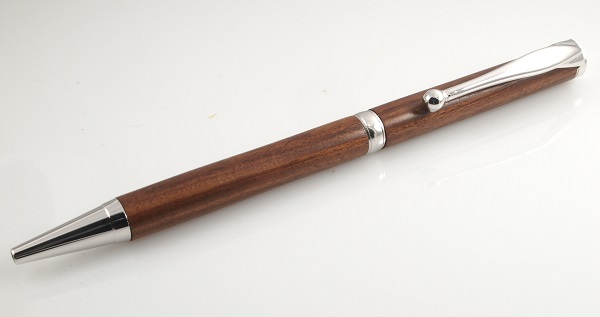 The Slimline pen is comfortable and well balanced. The single twist operation will extend the tip for smooth writing. Available in Titanium Gold and Platinum plating. Uses a Cross® #8513 (black) or equivalent refill. Pen size is approximately 5/16" x 5".